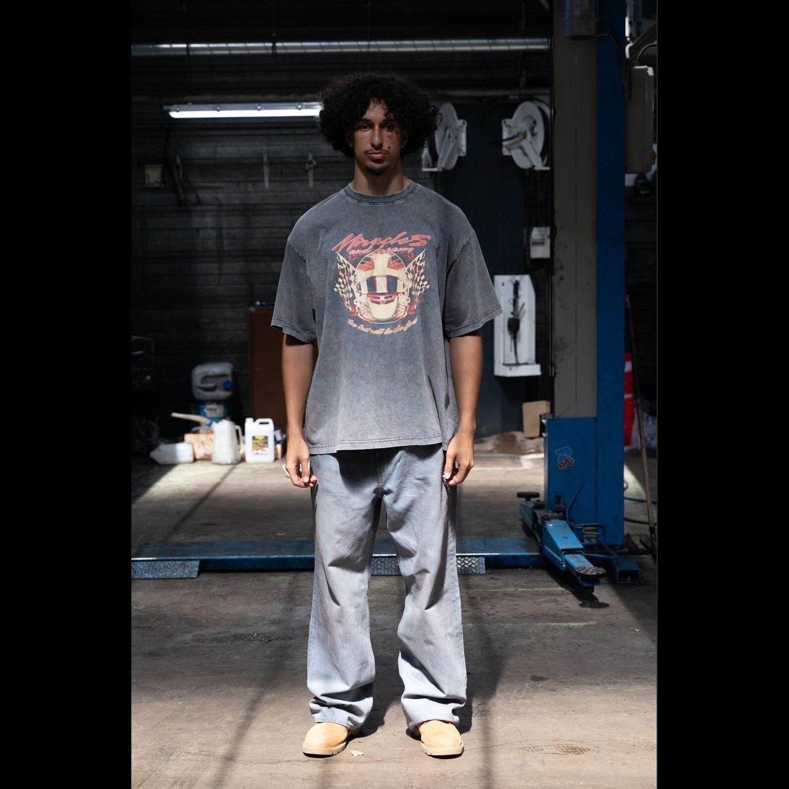 Confortable et oversize le t-shirt Grey formule 1 possède un col rond finition bord-côte.